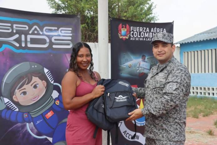 Continuamente la Fuerza Aeroespacial Colombiana muestra su compromiso con la población civil del caribe colombiano, en esta ocasión fueron entregados cerca de 60 kits escolares a madres de familia de la “Institución Educativa Departamental Rural de Palermo” en la sede primaria Villa Clarín en el municipio de Sitio Nuevo, Magdalena.