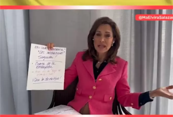 En su mensaje, Salazar señaló: «la última información que tuvimos de Colombia es que la Corte Suprema de Justicia estuvo rodeada de manifestantes y los jueces, los magistrados no podían salir del edificio, porque había una manifestación donde muchas de las banderas, se veían que decían M-19, usted sabe que el M-19, fue un grupo guerrillero que hizo unas matanzas importantes y que el presidente actual de Colombia, el señor Petro pertenecía al M-19”.