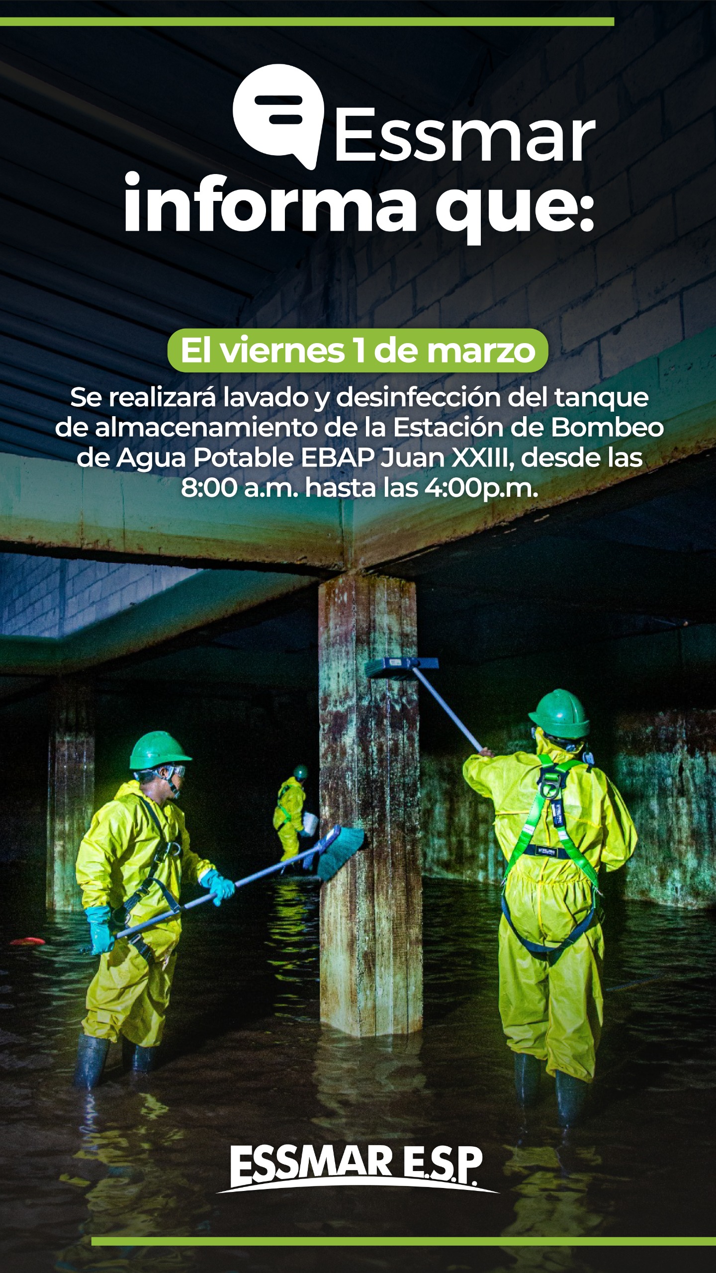 La Empresa de Servicios Públicos del Distrito de Santa Marta, Essmar E.S.P., ha anunciado la realización de labores de mantenimiento preventivo en la Estación de Bombeo de Agua Potable (EBAP) Juan XXIII, como parte de su compromiso con la calidad del suministro hídrico en la ciudad.