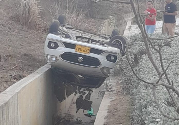 En el hecho, un carro particular se quedó sin frenos y quedó volcado a un lado de la vía.