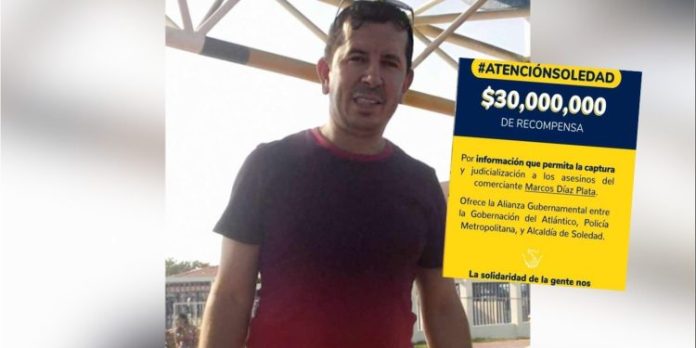 En una alianza entre la Gobernación del Atlántico, la Policía Metropolitana de Barranquilla, y la Alcaldía de Soledad, se ha acordado ofrecer una recompensa de hasta $30 millones de pesos por información que conduzca a los responsables del asesinato del comerciante Marcos Díaz Plata.