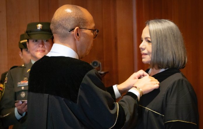 En una ceremonia solemne, la Sala Plena de la Corte Suprema de Justicia realizó la entrega de la toga e imposición de escudo a la magistrada Marirraquel Rodelo Navarro, quien asumió sus funciones en la Sala de Descongestión de la Sala de Casación Laboral de la corporación.