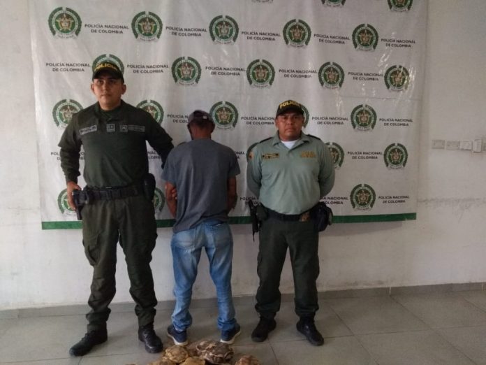 La Patrulla Policial observa una persona en actitud sospechosa en la vía Planeta Rica – Montería, los uniformados detuvieron al sujeto, que se movilizaba en una motocicleta que al realizar registro al interior de un costal se hallan 40 tortugas “hicoteas” que llevaba en su poder.