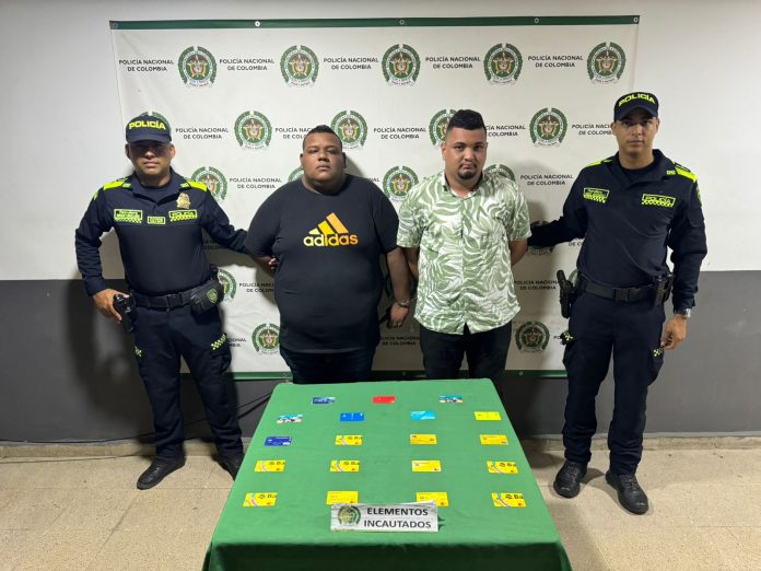 Fueron aprehendidos por los uniformados con 19 tarjetas bancarias de diferentes entidades financieras