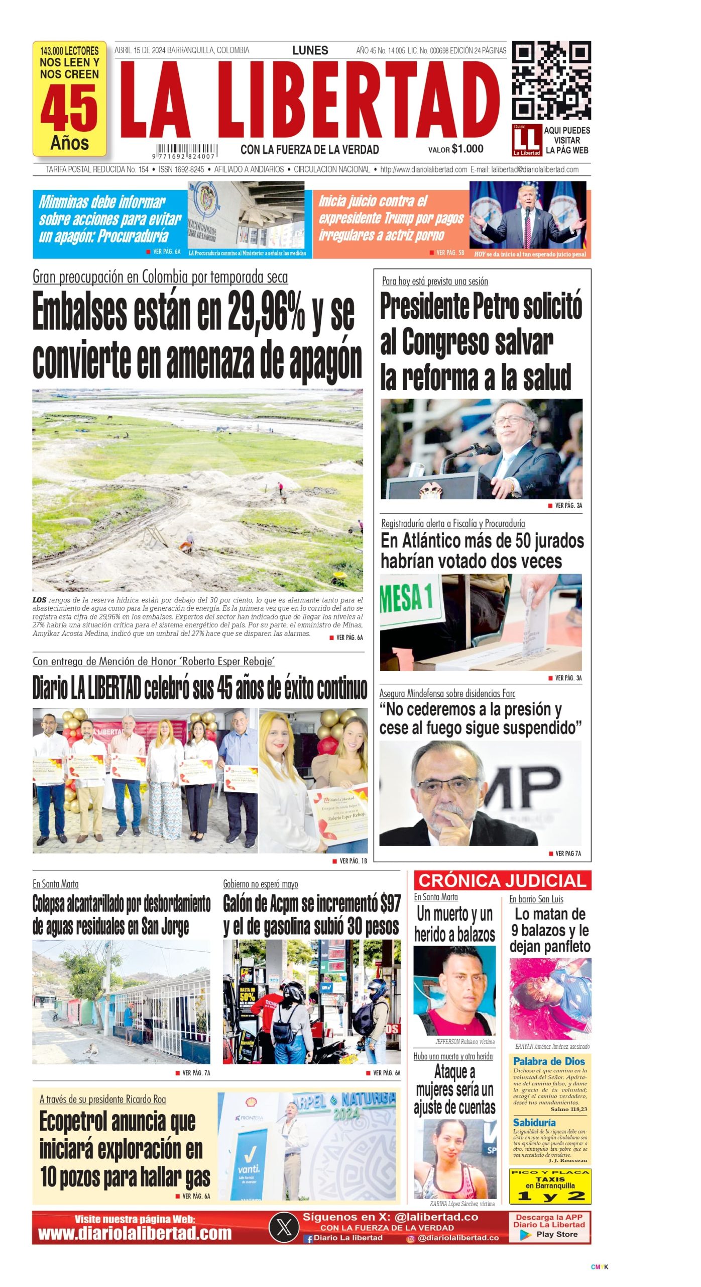Primera Pagina – 15 de Abril del 2024