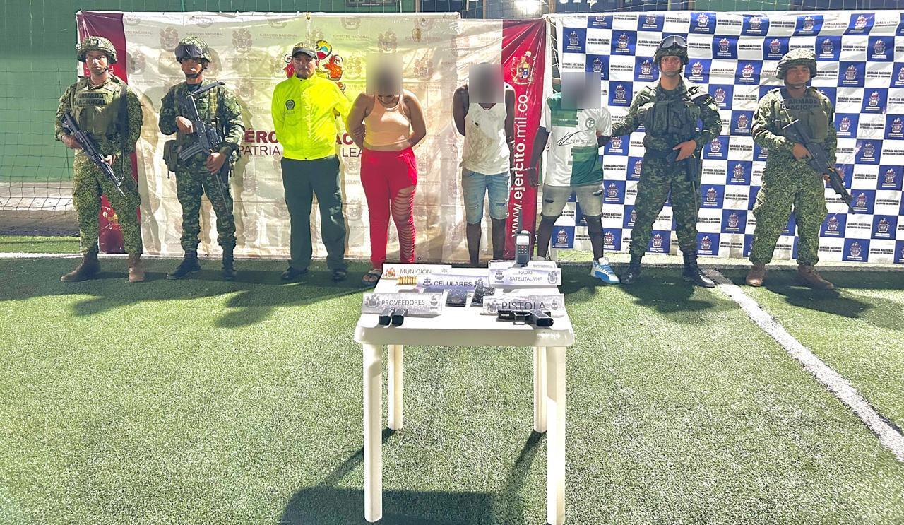 Así mismo, en una operación de allanamiento a una vivienda, se capturó en flagrancia a una mujer de nacionalidad extranjera, que tenía en su poder una pistola, dos proveedores, 30 cartuchos y un radio VHF; y es sindicada de llevar la contabilidad de los dineros recaudados producto de la extorsión a los comerciantes del municipio.
