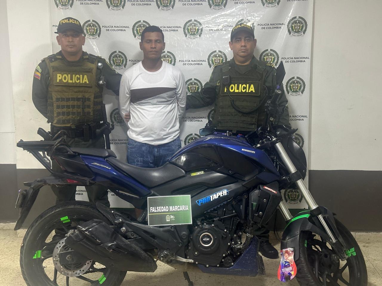 Por lo anterior, se procede a la captura de su poseedor, quien fue dejado a disposición de la Fiscalía General de la Nación, por el delito de Falsedad Marcaría.