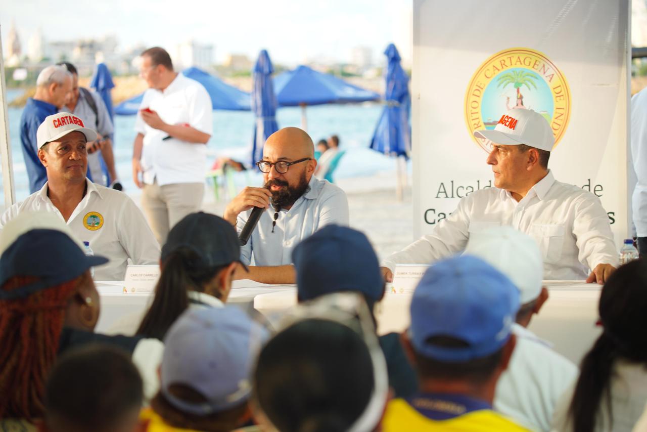 Por su parte, Carlos Carrillo, director de la UNGRD, destacó: “(…) estamos comprometidos a seguir avanzando con los proyectos de protección costera. Hoy podemos anunciar una inversión de 37. 000 millones de pesos, por parte de la Unidad (UNGRD), junto con un firme compromiso de continuar apoyando estos importantes esfuerzos. Esto demuestra que el sistema puede funcionar cuando los actores trabajan, juntos, de manera armónica y consensuada. Es una buena noticia que resuelve problemas de gestión pasados y me complace especialmente saber que los actores de la playa, que dependen de la economía popular, pronto podrán volver a trabajar”.