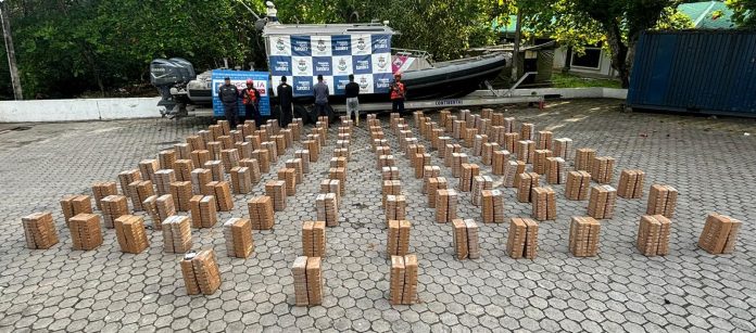 «En la interdicción, que fue posible gracias al seguimiento aéreo, fueron incautados 4.919 kilogramos de clorhidrato de cocaína que pretendían ser transportados por organizaciones narcotraficantes», detalló la Armada en un comunicado.