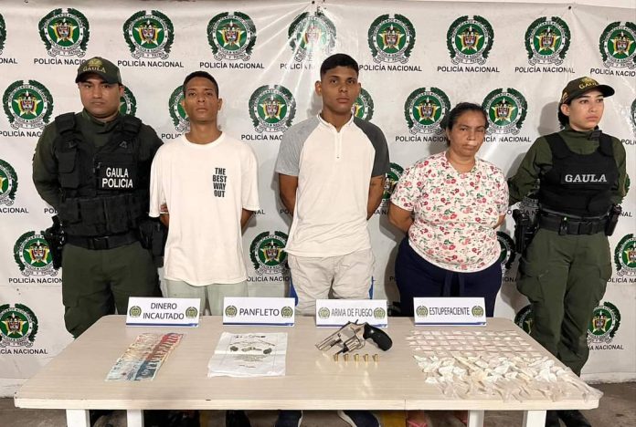 Estas personas presuntamente serían dinamizadores de delitos como extorsión, tráfico de armas de fuego y estupefacientes en el área metropolitana, de igual forma se logra incautar un arma de fuego tipo revolver con 05 cartuchos, 100 dosis de base de coca, panfletos extorsivos y 200 mil pesos.