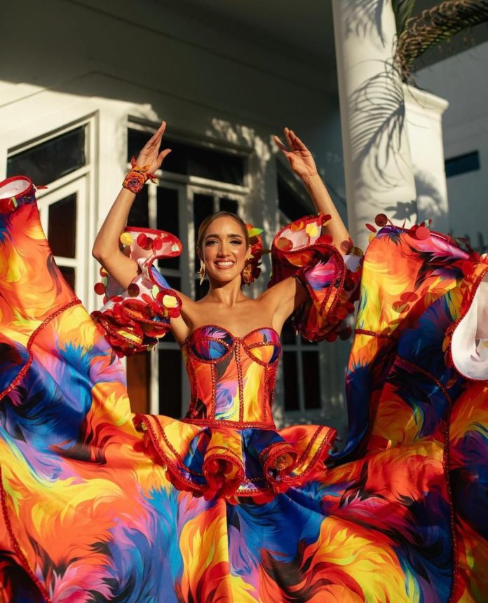 Ayer jueves 13 de junio, Melisa Cure participó en la Parada Folclórica de adultos, donde lució una pollera colorida diseñada por Alfredo Barraza, inspirada en los tonos vibrantes de los atardeceres de la sabana y en homenaje a los ritmos tradicionales de Porro y Fandango.