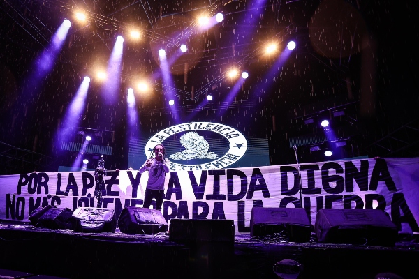 A esa hora, cerca de las 10 de la noche, la Plaza Cívica Ciudad Victoria seguía llena, a pesar de que la lluvía no había amainado. El público había esperado a la banda, una de las más importantes del rock en Colombia, y coreaba “¡La Peste! ¡La Peste!», mientras Dilson, Carlos Marín, Isabel Valencia y Marcelo Gómez cantaban varios de sus éxitos, muchos de los cuáles hablan del conflicto en los territorios, la violencia, la corrupción, la desigualdad y los derechos humanos.