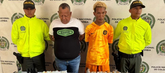 En un operativo realizado por la Policía Metropolitana de Barranquilla en el barrio Las Palmas, fueron capturados dos individuos vinculados al presunto tráfico de drogas. Renzo Mendoza Alonso y Rafael Arturo Muñoz Pacheco, identificados como miembros de la banda ‘Los Costeños’, fueron arrestados durante un allanamiento donde se decomisaron 3.4 kg de marihuana, una pistola calibre 9mm, cuatro proveedores de munición, 17 cartuchos del mismo calibre y la suma de $194.000 millones en efectivo.