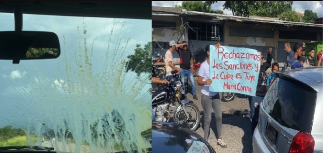 Durante el recorrido de María Corina Machado en la zona norte del estado Táchira, un grupo de encapuchados atacó la caravana que salió de La Fría, municipio García de Hevia, este jueves 27 de junio. Desconocidos lanzaron tachuelas desde un elevador, lo que provocó que los cauchos de la camioneta en la que se movilizaba la líder opositora se espicharan. Además, los atacantes golpearon a los miembros de la caravana y lanzaron huevos a los presentes.
