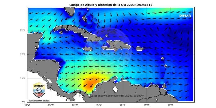 Según el Centro de Investigaciones Oceanográficas e Hidrográficas del Caribe (CIOH), se esperan vientos intensos con velocidades de hasta 35 nudos (65 km/h) y olas que podrían superar los 3.5 metros.