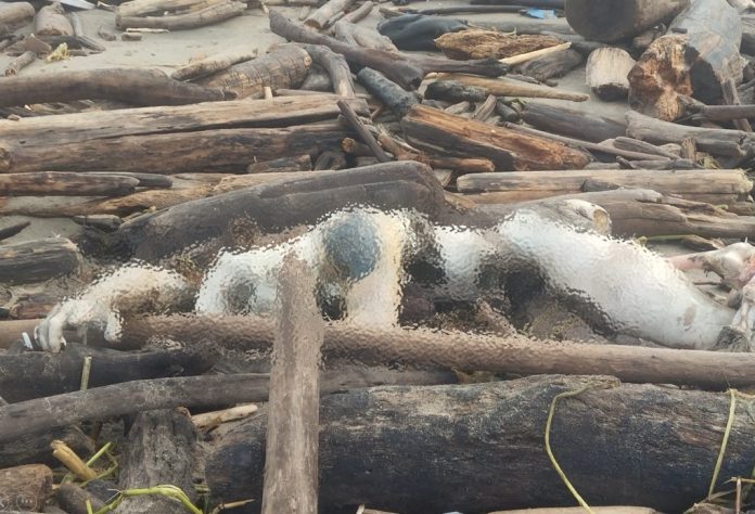 El macabro hallazgo ocurrió aproximadamente a las 7:40 de la mañana, cuando residentes del área encontraron el cuerpo a orillas del Mar Caribe. Según el informe preliminar de la Policía, el hombre, de piel trigueña y sin prendas de vestir, yacía entre troncos en la orilla del mar.
