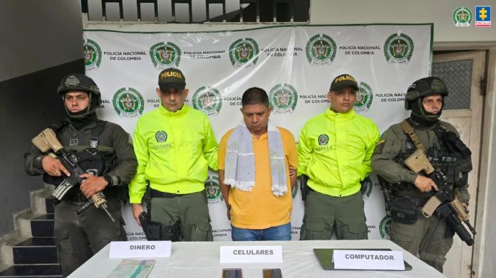 ‘Pablo’ fue capturado por la Dijin de la Policía Nacional en Granada (Meta). En su poder fueron encontrados dos celulares, varias sim card, un computador y una memoria USB cuya información se cree puede ser relevante para las investigaciones que adelanta la Fiscalía. Además, se incautaron 10 millones de pesos con fines de comiso.