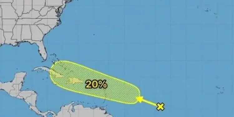 Según los últimos informes del NHC, este disturbio podría intensificarse al acercarse a las Antillas Menores a principios o mediados de la próxima semana. De mantener su trayectoria actual, existe la posibilidad de que afecte a las Antillas Mayores hacia el final de la semana.