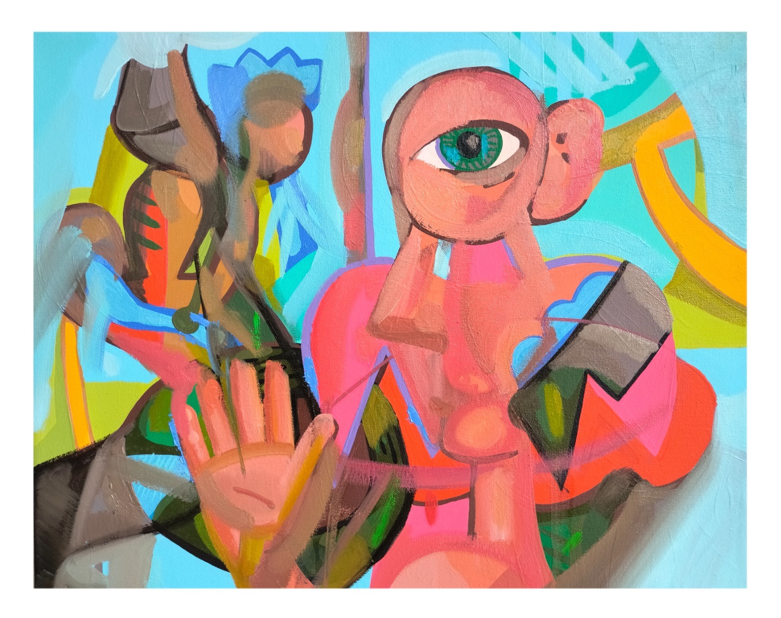 La exposición ‘Arqueología y Balbuceos’ reúne más de 15 cuadros que exploran una paleta vibrante de colores y formas. Las piezas invitan a un diálogo entre el espectador y el universo pictórico de Russo, donde los trazos libres revelan y ocultan, sugiriendo un mundo interno escondido tras pinceladas aparentemente arbitrarias.