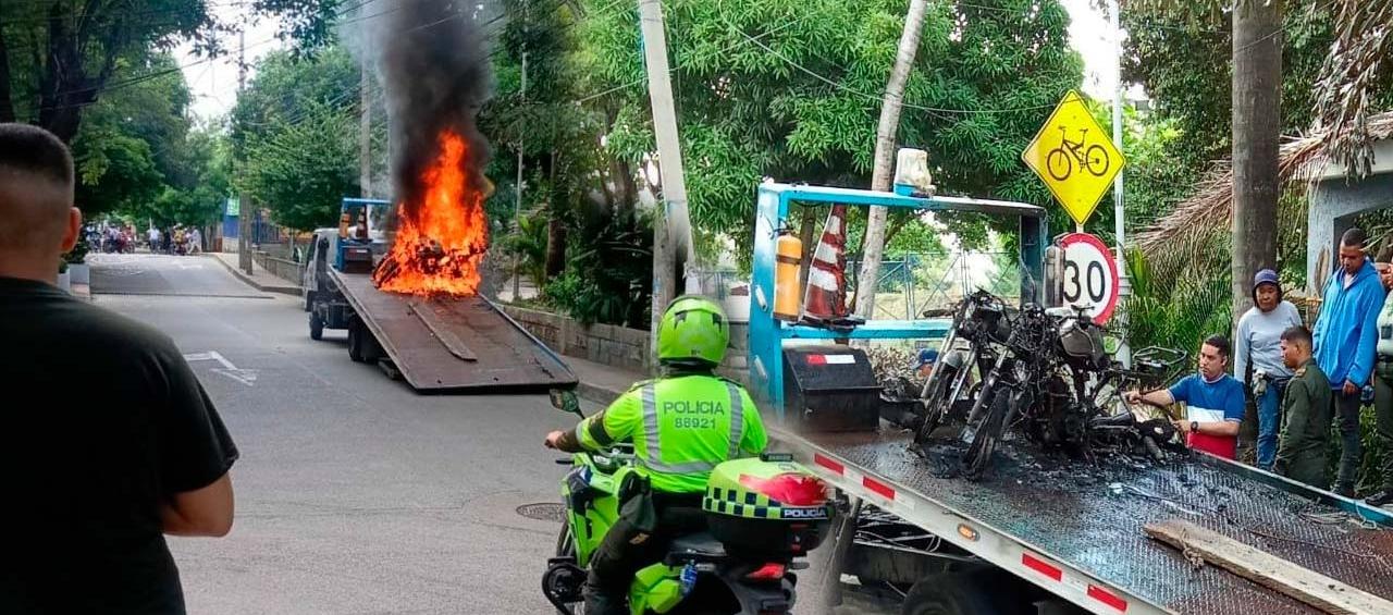 Un hecho sorprendente ocurrió esta mañana en el sector del Jardín Botánico, cuando un motociclista incendiaron dos motocicletas que estaban siendo transportadas en una grúa de tránsito.