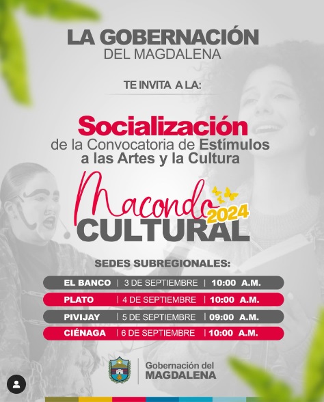 La Gobernación del Magdalena se complace en invitar a todos los interesados a participar en la Convocatoria de Estímulos a las Artes y la Cultura ‘Macondo Cultural’. Esta iniciativa busca promover y apoyar el desarrollo cultural en nuestra región.