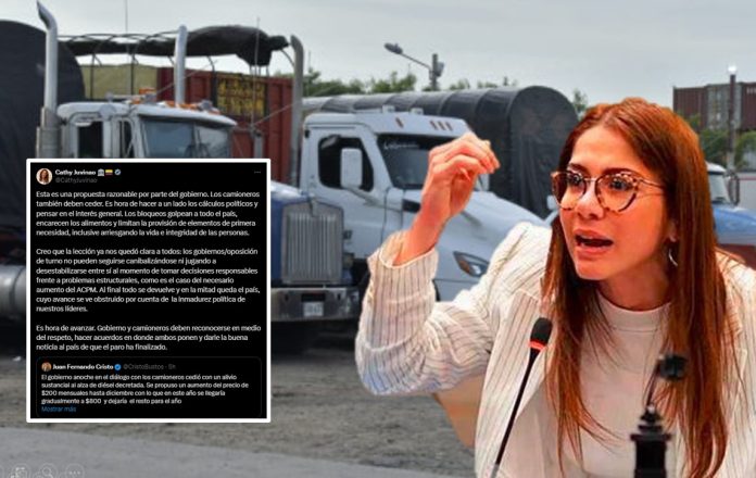 La representante a la Cámara, Caterine Juvinao, expresó su apoyo a la propuesta del gobierno para resolver el conflicto con los camioneros, destacando la necesidad de que ambas partes muestren flexibilidad. En sus declaraciones, Juvinao instó a dejar de lado los cálculos políticos y centrarse en el interés general del país.