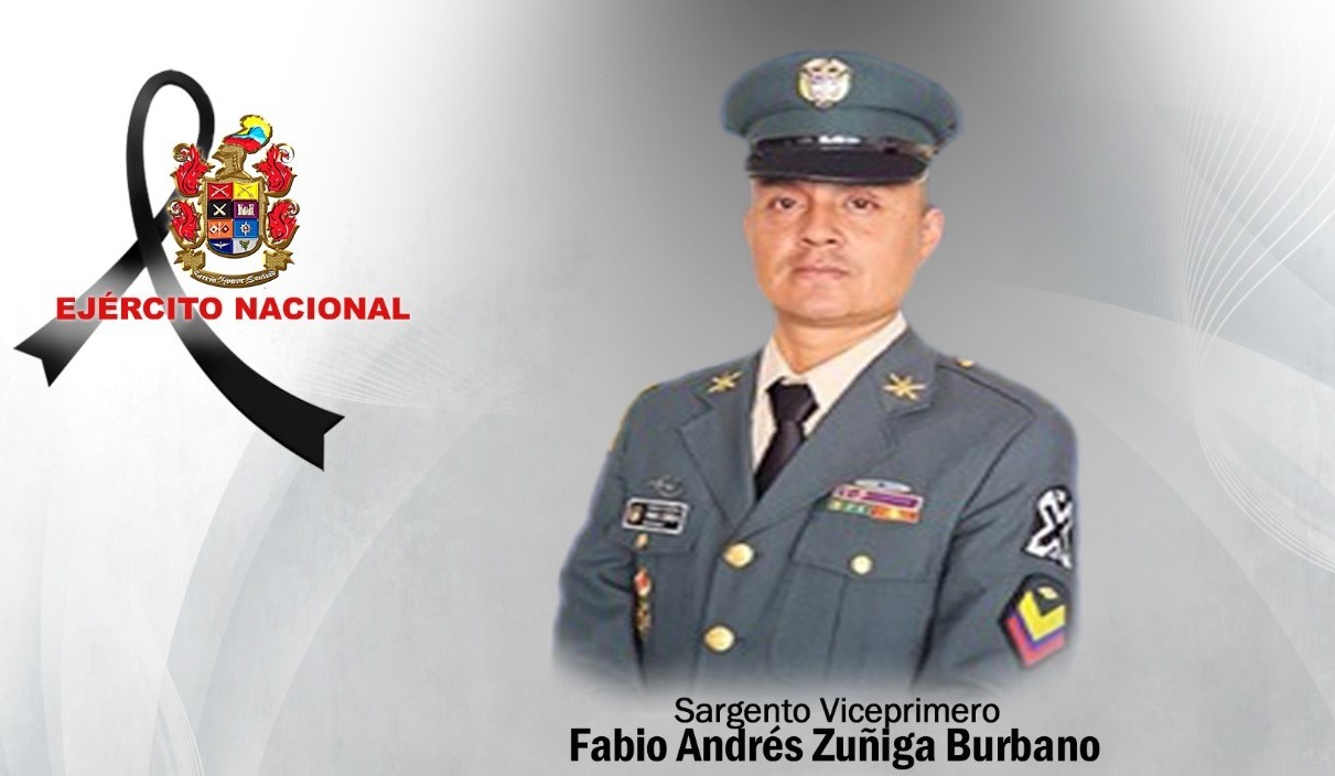 Con profunda tristeza recibimos la dolorosa noticia del fallecimiento del Sargento Viceprimero Fabio Andrés Zúñiga Burbano, quien, pese a los esfuerzos médicos especializados del personal del Hospital San Vicente en Arauca capital, se suma a las víctimas del cobarde atentado… pic.twitter.com/dvmiESNkG0