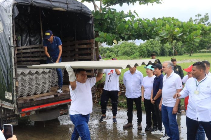 El gobernador del Atlántico, Eduardo Verano de la Rosa, lideró una jornada de entrega de materiales de construcción a las familias que fueron afectadas por los vendavales ocurridos el 16 y 19 de septiembre pasado.