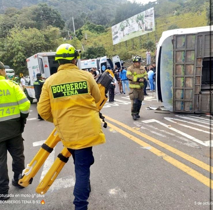 Tras conocerse del accidente se activaron los protocolos de emergencia que fueron atendidos por unidades de Bomberos de Tena, Mosquera, San Antonio, Soacha (oficiales y voluntarios), y Bojacá.