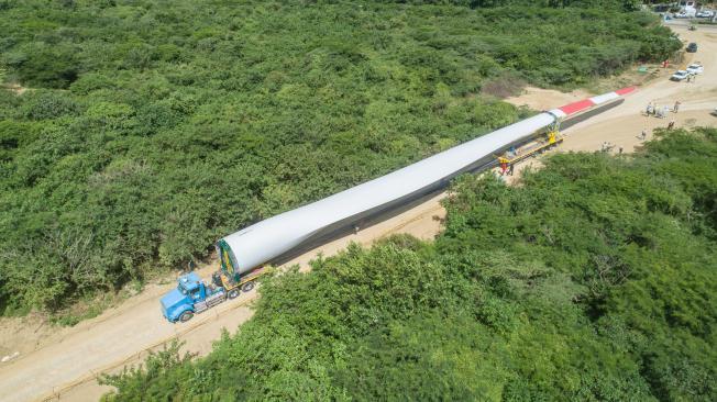 El traslado de estas palas de 80 metros de longitud por las carreteras del Caribe requirió de un proceso logístico importante previo, para lograr transportarlas desde el Puerto de Mamonal, en Cartagena.