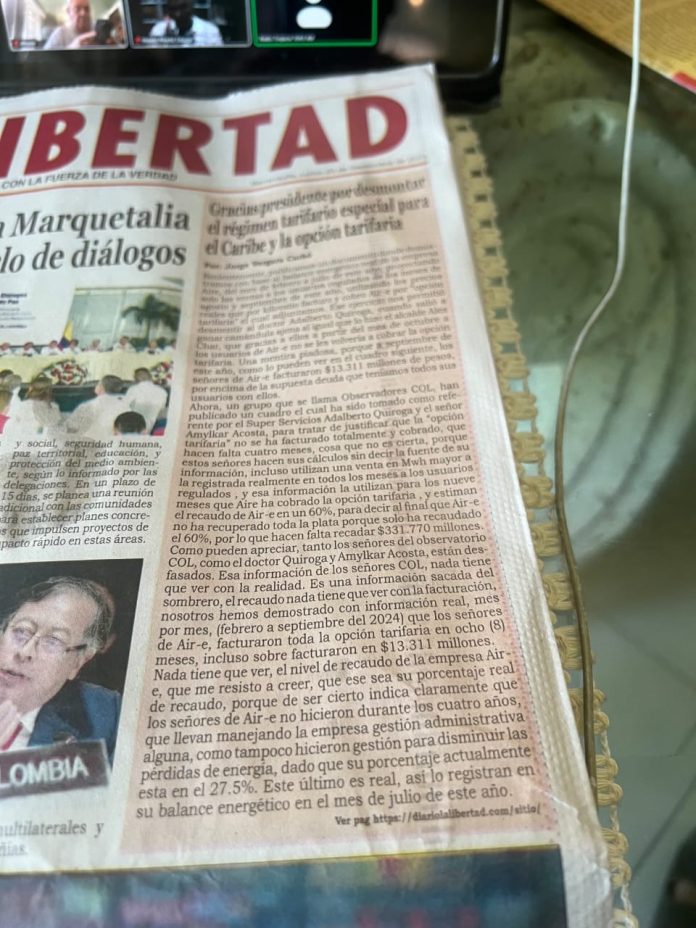 Jorge Vergara Cabo anunció a través de su cuenta de X que espera que la Comisión de Regulación de Energía y Gas (CREG) elimine el régimen tarifario especial para la región del Caribe.