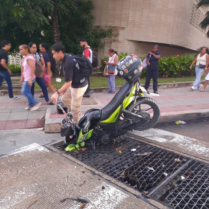Uno de los siniestros se registró en el norte de Barranquilla, donde una motocicleta quedó atascada en uno de los huecos de las rejillas.