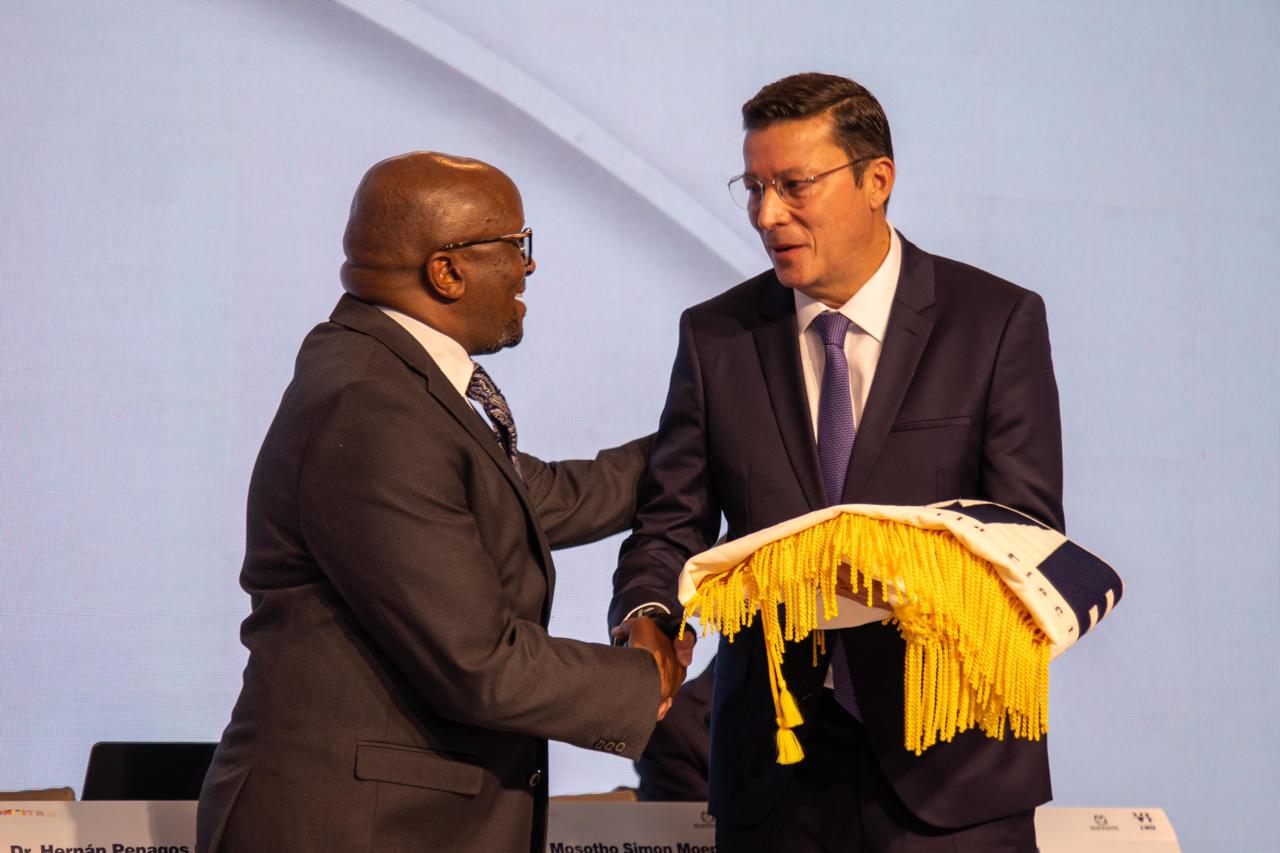 El registrador nacional del Estado Civil, Hernán Penagos, recibió la bandera de A-WEB de manos del presidente saliente, Mosotho Moepya. Durante su discurso, Penagos destacó la importancia del organismo y agradeció la confianza depositada en Colombia.