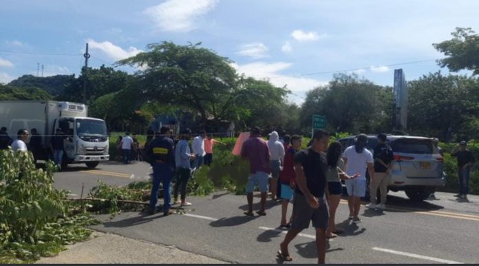 El bloqueo en la vía al mar es a la altura del sector del «Sombrero Vueltiao».