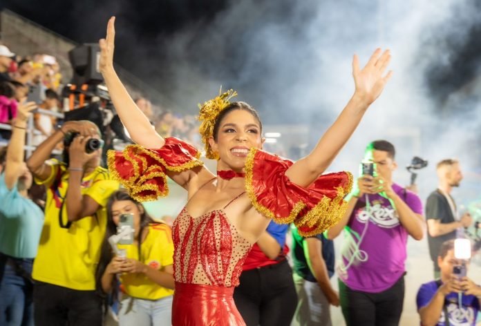 Con un estallido de color y ritmo, la Reina del Carnaval de la 44, Alexsandra Estarita Villa, marcó la pauta en el Show Inaugural de la Copa Mundial Femenina de Fútbol de Amputados.