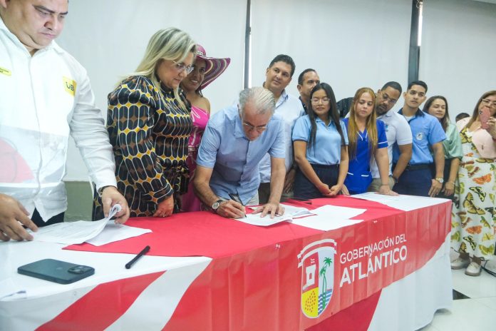 En la firma del documento, durante el acto cumplido hoy 5 de noviembre, en el piso 12 de la Gobernación, participaron el gobernador Eduardo Verano; el consejero para la Educación Superior, Julio Mejía; el rector de Institución Universitaria de Barranquilla, IUB, Arcesio Castro; hermana Gloria Marín, rectora de la Escuela Normal Superior Nuestra Señora de Fátima de Sabanagrande; Liliana Patricia Devis Algarín, rectora de la Escuela Normal Superior Santa Ana de Baranoa; y Ana Lucía Tatis Mosquera, rectora de la Escuela Normal Superior de Manatí. El rector de la Universidad del Atlántico, Danilo Hernández, estuvo de manera virtual.