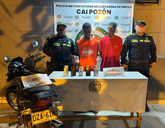 En desarrollo de planes contra el hurto, uniformados de la Metropolitana de Cartagena lograron interceptar y capturar en las últimas horas a dos sujetos, quienes minutos antes habían hurtado a una mujer, en el barrio San Fernando.