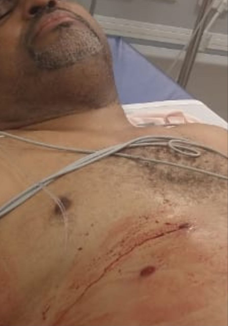 Las fotos muestran a Víctor Reales después de que fuera estabilizado por los galenos del Hospital Serena del Mar de Cartagena. Inmediatamente que llegó, fue internado en una sala UCI donde fue asistido adecuadamente.