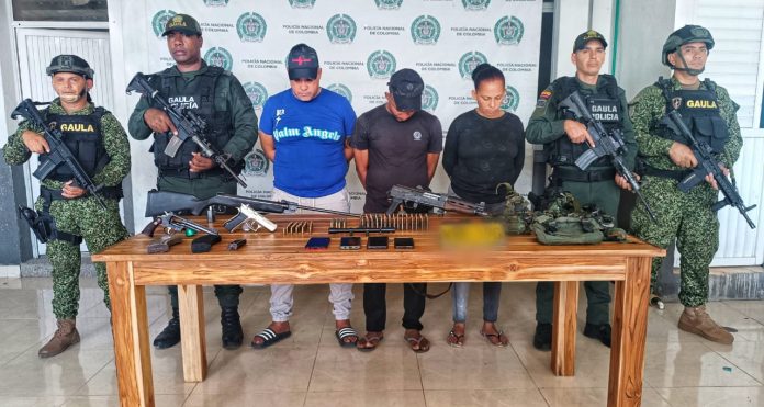 La Policía Nacional a través del Gaula Bolívar, inteligencia policial en coordinación con Gaula Militar, mediante una diligencia de allanamiento y registro, lograron capturar en flagrancia a tres presuntos delincuentes por el delito de tráfico, fabricación y porte de armas de fuego, municiones y accesorios. Estas tres personas fueron capturadas en el municipio de Tacamochito, jurisdicción de Córdoba- Bolívar, y estarían al servicio de la subestructura Nicolás Urango reyes del Clan del Golfo.