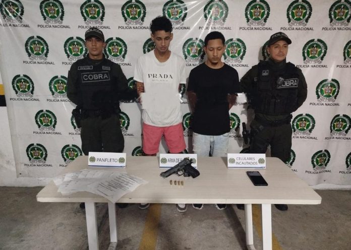 Los hechos ocurrieron durante labores de patrullaje en la zona de la Calle 71 con Cra 23A, donde los uniformados observaron a los dos individuos y les solicitaron un registro. Durante la inspección, se encontró que uno de los capturados portaba una pistola calibre 9 mm, junto con un proveedor y cuatro cartuchos para el arma. Al segundo detenido se le hallaron varios panfletos extorsivos.