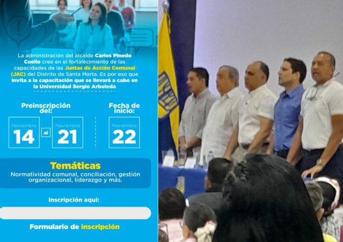 Los comunales de Santa Marta se sienten orgullosos de contar con una administración que los valora y acompaña que quiere el fortalecimiento de la estructura comunal y prueba de esto es el hecho de que hoy exista y se esté ejecutando mediante convenio con la Universidad Sergio Arboleda un importante proyecto y programa de capacitación comunal en que se desarrollan modulo de temas de importancia con el acompañamiento y participación de formadores para la acción comunal y necesidad para el ejercicio del liderazgo comunal como lo son: normatividad comunal, gestión de proyectos y liderazgo y participación ciudadana.