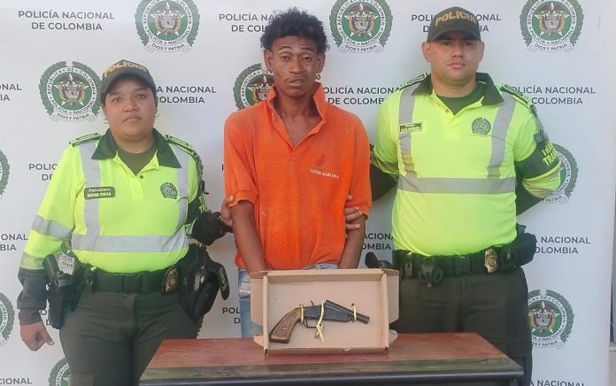 La captura se materializó luego de que los uniformados sorprendieran a un hombre que pretendía cometerle hurto a un conductor de un bus de servicio público que se encontraba varado sobre el sector del peaje de Tasajera, intimidándolo con un arma de fuego.