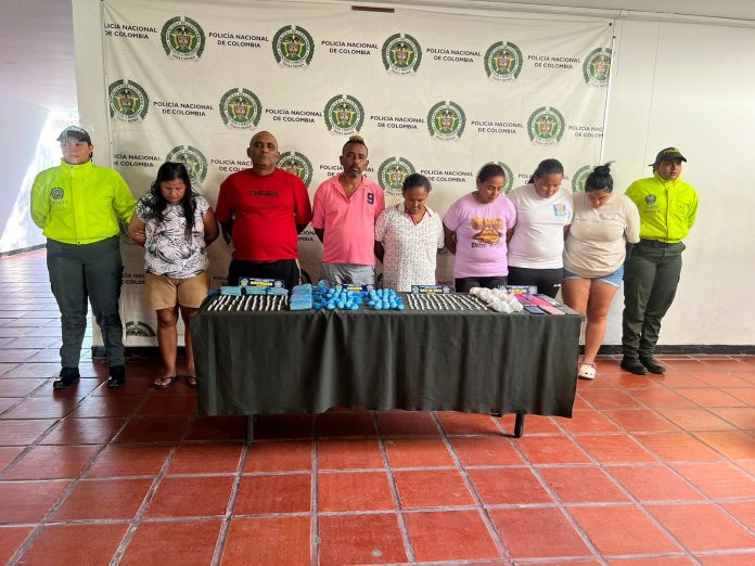 Los capturados son: Candelaria Isabel Puerta Sánchez, José de la Cruz Orozco Polo, Mariluz Mendoza Figueroa, Kendri Isabel Puertas Sánchez, María José Luna Hernández, Jhon Jairo Orozco Polo, Luzdari de la Vega Picón y Karen María Mendoza Figueroa.Los capturados deberán responder por los delitos de concierto para delinquir y tráfico, fabricación o porte de estupefacientes.
