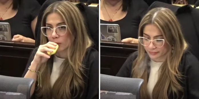 Juvinao estaba siendo llamada por la mesa directiva y en ese momento la cámara la captó consumiendo el cigarrillo electrónico.