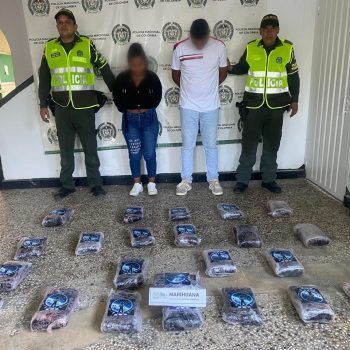 El procedimiento se llevó a cabo en el área de prevención vial ubicada en el sector del peaje El Difícil, jurisdicción del municipio de Nueva Granada. Allí, los uniformados detuvieron un bus de servicio público interdepartamental que cubría la ruta Medellín – Maicao y, tras realizar un riguroso registro a pasajeros y equipajes, hallaron dos bolsos con 23 paquetes de marihuana, que en total pesaban 23 kilos.