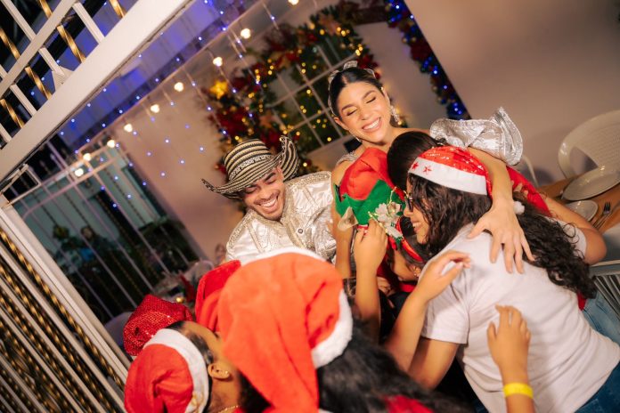 La magia de la Navidad y la alegría del Carnaval se unieron en una conmovedora jornada organizada por los reyes del Carnaval de la 44, Alexsandra Estarita Villa y Juan Rivera, quienes ofrecieron una gran mesa llena de comida, postres y frutas para más de 20 niños de la cumbiamba del Instituto La Salle.