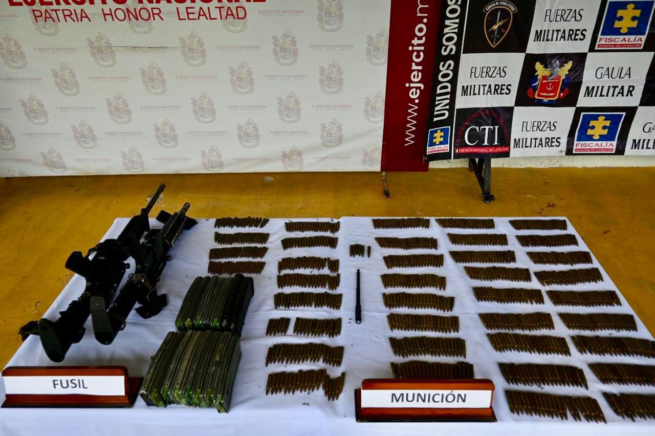 Como parte de los resultados de la operación, se incautaron dos fusiles, 15 proveedores, una gran cantidad de munición de guerra, víveres y material de intendencia que es de uso exclusivo de las Fuerzas Militares, lo cual debilita significativamente las capacidades operativas del grupo armado ilegal.