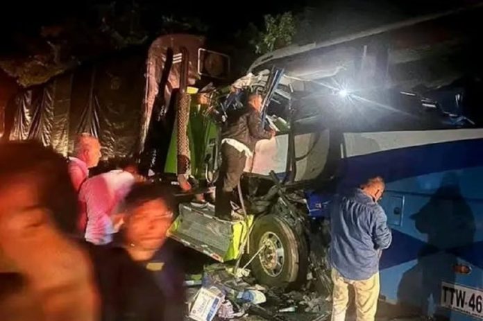 El siniestro vial con ese saldo trágico se registró más específicamente en el kilómetro 39, sector Los Lirios de la mencionada vía, al colisionar un bus afiliado a la empresa Copetran y un tractocamión cargado.