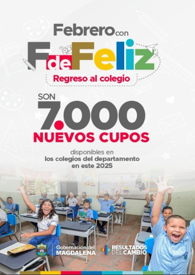 La Gobernación del Magdalena sigue apostando por la educación de calidad en el departamento. Con la iniciativa Febrero con F de Futuro, aún hay nuevos cupos disponibles en los colegios para niños, niñas y jóvenes del departamento, garantizando una educación integral y transformadora.