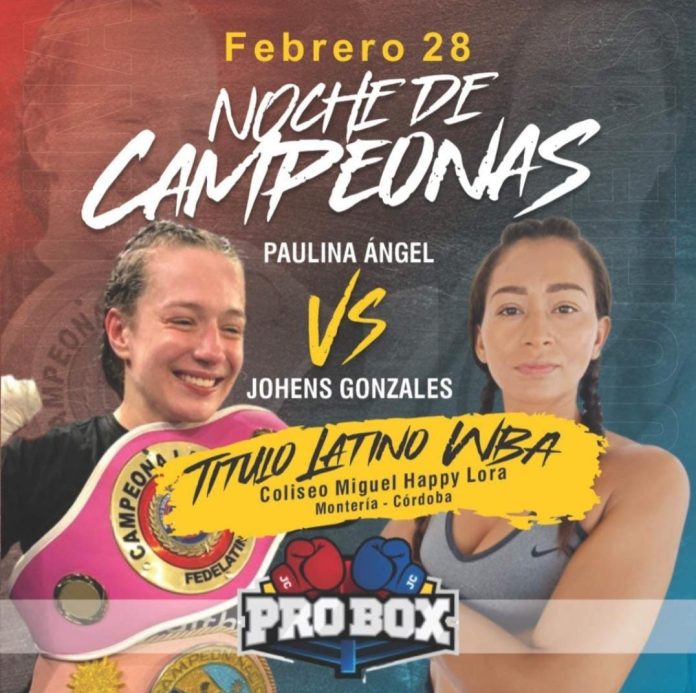 Con el transcurrir de los días, mayores son las expectativas que se han creado en torno a esta primera gran cartelera boxística en el departamento de Córdoba, denominada NOCHE DE CAMPEONAS, y que tendrá como atractivo principal el combate entre la antioqueña Paulina Ángel, y la bolivarense Johen González, válido por el título latino de la WBA y WBO, espectáculo organizado por la empresa PROBOX COLOMBIA, que preside Juan Carlos Devia.